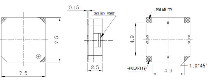 7.5 * 7.5 * 2.5mm 2731Hz pasif SMD elektromanyetik zil 31Ω 82dB