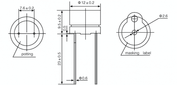Uzun pim ile 12 * 9.5mm aktif elektromanyetik zil 2300 ± 300Hz