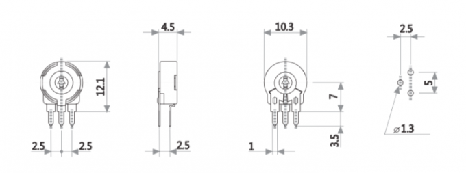 10mm İspanya giyotin potansiyometre PT10 tipi, 100Ω ~ 5MΩ, 0.15 W