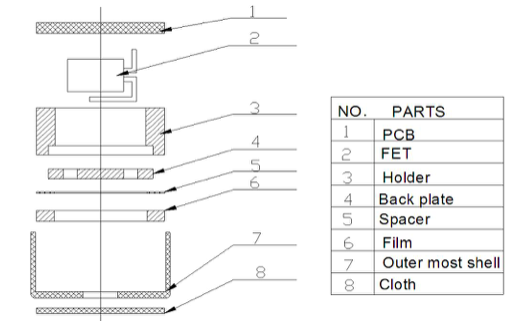 | Duyarlılık (1KHz, 0dB = 1V / Pa) | -32 ± 3dB; -34 ± 3dB; -36 ± 3dB; -38 ± 3dB; -40 ± 3dB; -42 ± 3dB; -44 ± 3dB |