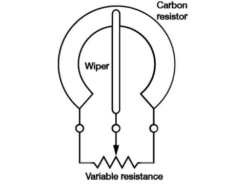 Her bir uçtaki terminal, dahili olarak Ohm cinsinden sabit bir değer direncine bağlanmıştır. Merkez terminal, dirence temas eden ve uzunluğu boyunca hareket ettirilebilen bir siliciye dahili olarak bağlanmıştır.