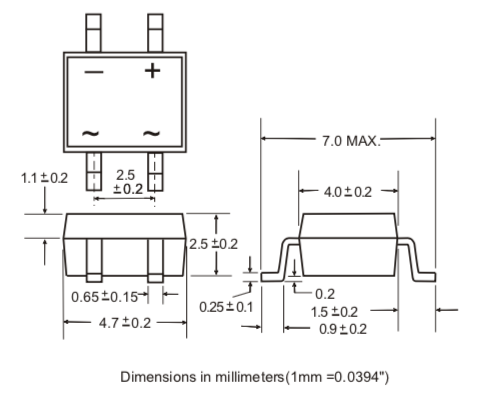 MB10S 0.5A 1000V tek fazlı cam pasifleştirilmiş köprü doğrultucular