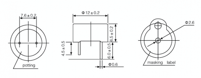 12 * 6.5mm DC tipi manyetik zil, osilatör devresi ile pin terminali