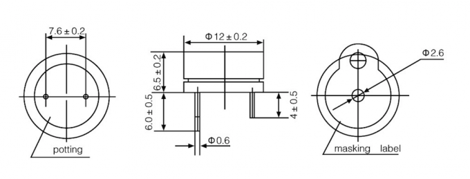 Osilatör devresi 12 * 6.5mm ile Pin terminali DC tipi elektromanyetik buzzer