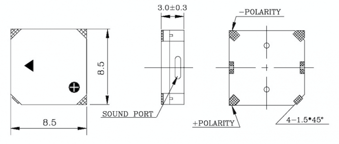 TV 8.5 * 8.5 * 3mm için 85dB SMD 3V manyetik yüzeye monte zil