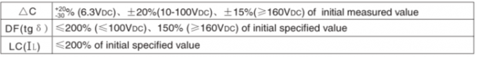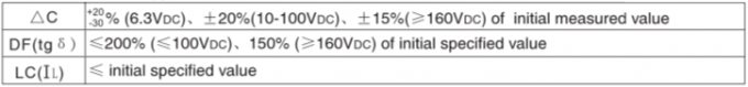 | Raf ömrü | + 85 ℃'da 500 saat boyunca (voltaj uygulanmayan) raftan sonra, oda sıcaklığında 16 saat geri yüklenir.