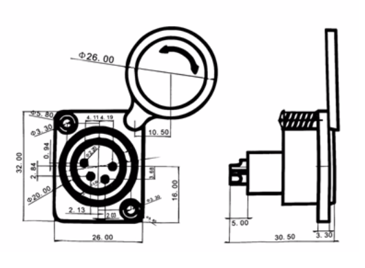 Sonu Suya Dayanıklı Kapaklı Panel Montaj XLR Dişi Şasi Soketi